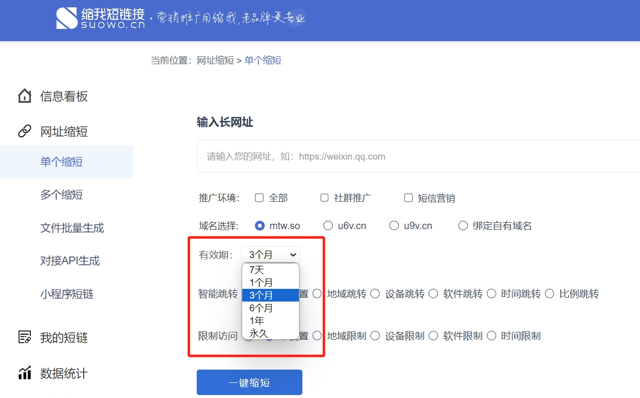 缩我短链接的操作极其简便,无需复杂的教程或专业知识。用户只需打开缩我短链接的官方网站,将需要缩短的长链接复制粘贴到指定位置,然后轻轻点击 “一键缩短” 按钮,瞬间就能生成简洁易记的短链接。