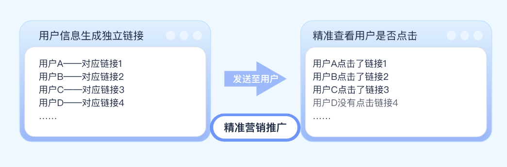 每个用户对应唯一短链接,企业可精确追踪手机号与点击行为的关联。例如,教育机构通过该功能识别出点击短链接的用户,次日电话回访转化率提升 35%。某地产商使用后,有效过滤 60% 无效线索,电销成本降低 40%。